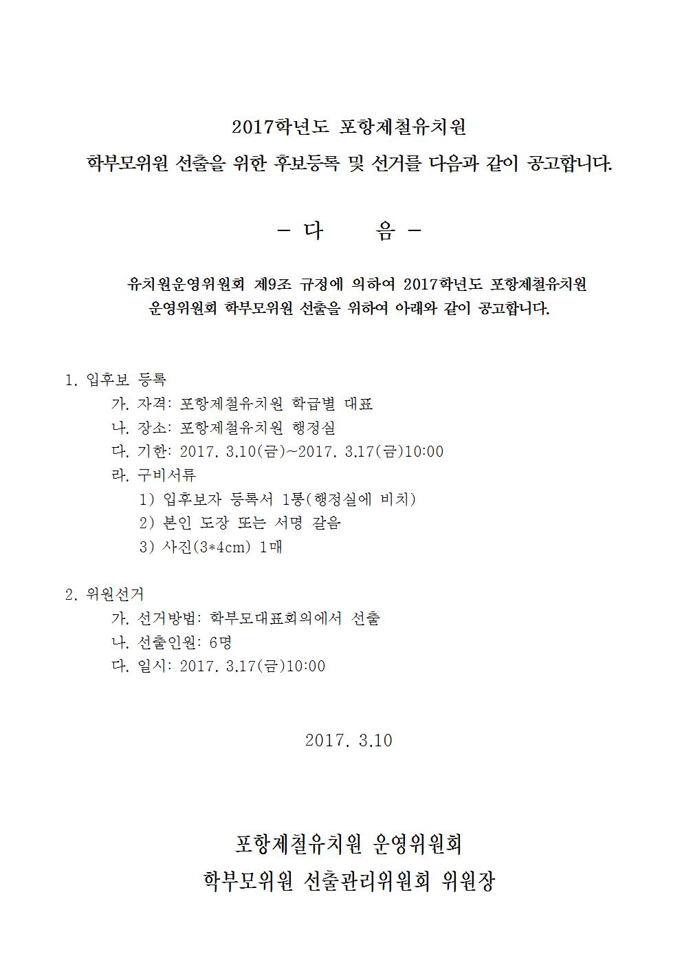 (유치원운영위원회) 2017학년도 포항제철유치원 운영위원회 구성 안내