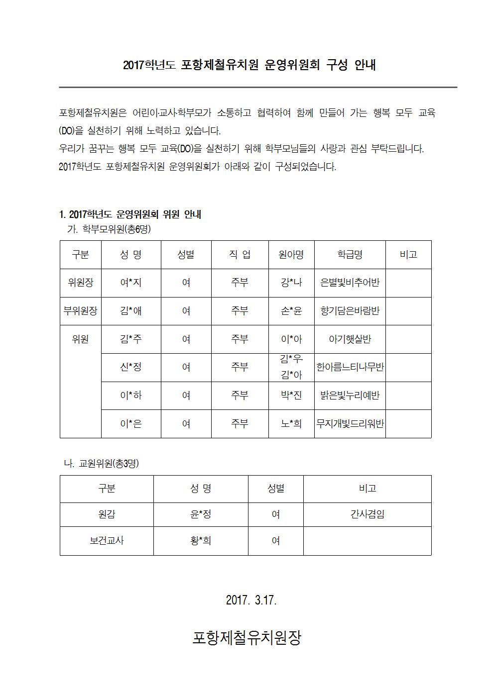 (유치원운영위원회) 2017학년도 포항제철유치원 운영위원회 구성 안내