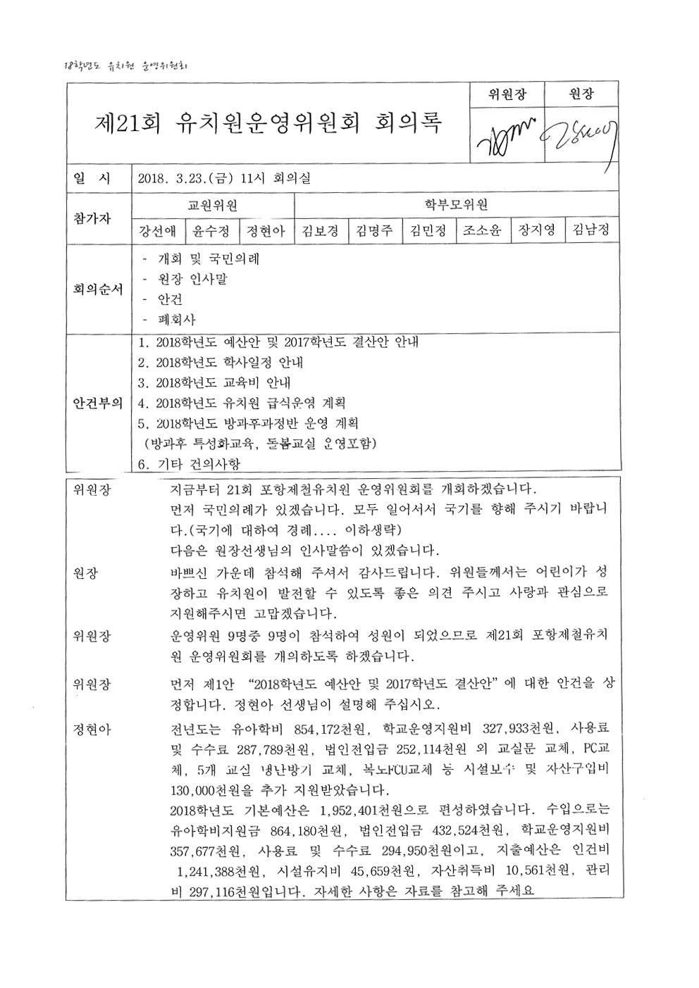 (유치원운영위원회)제21회 유치원운영위원회 회의록