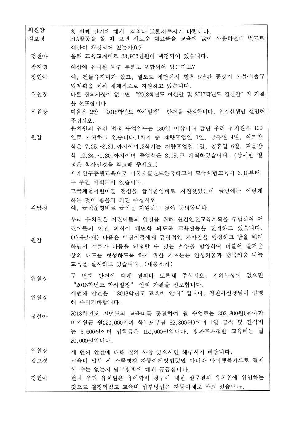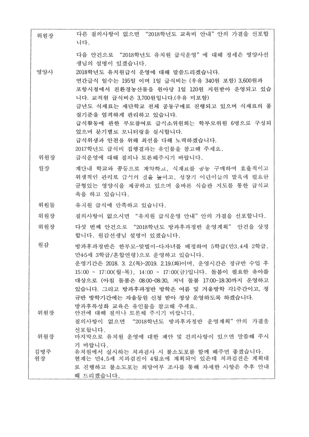 (유치원운영위원회)제20회 유치원운영위원회 회의록