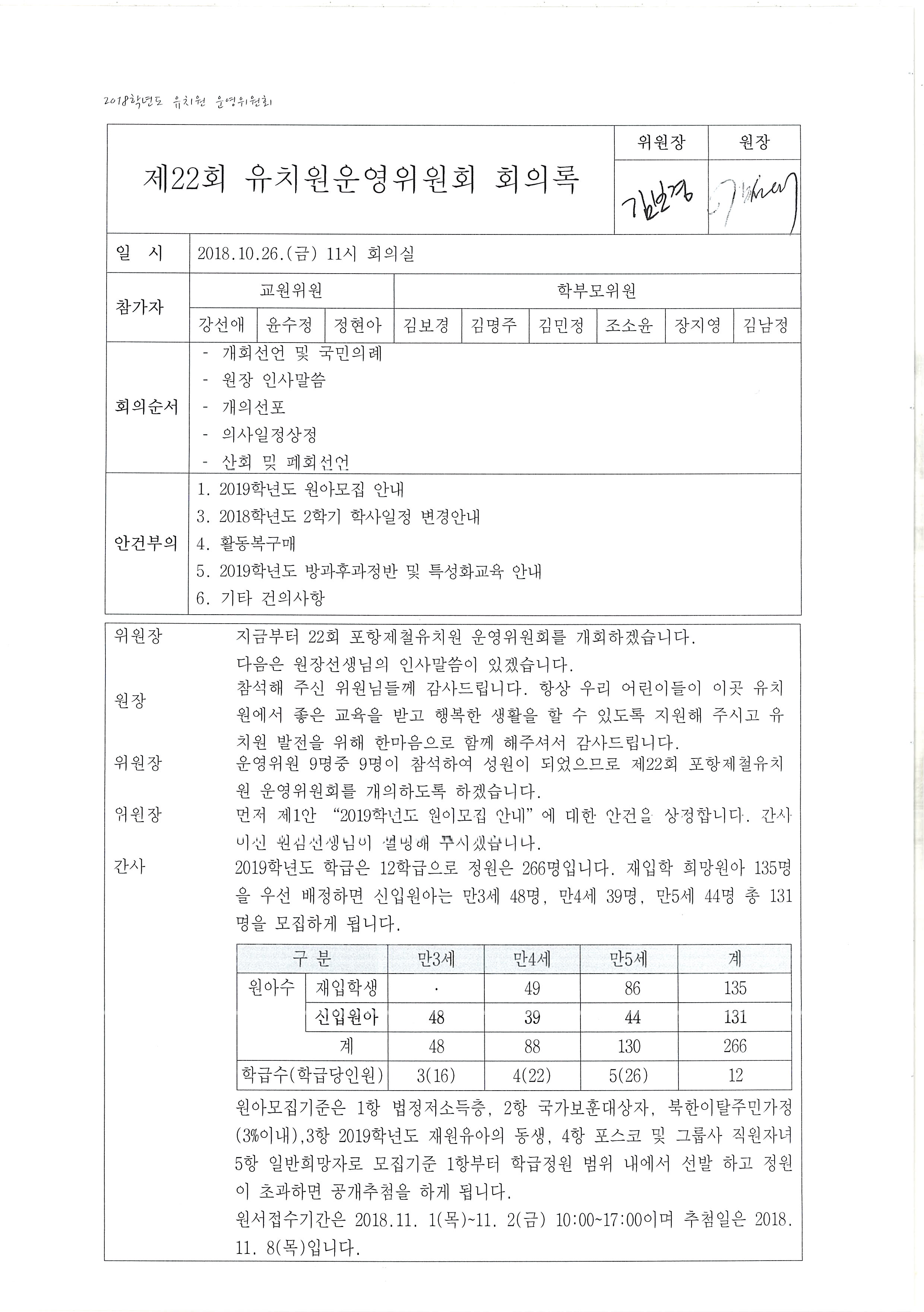 (유치원운영위원회)제22회 유치원운영위원회 회의록