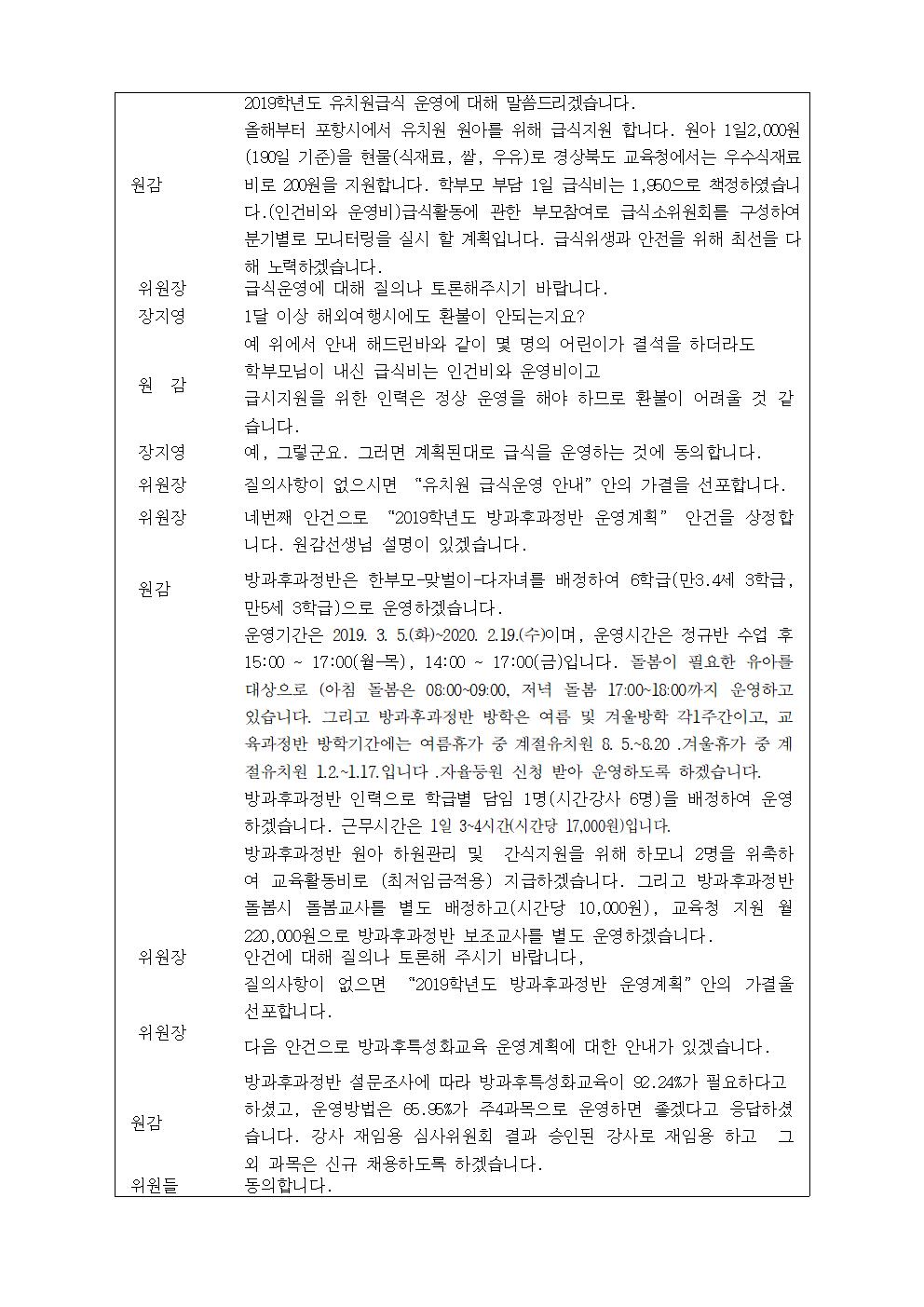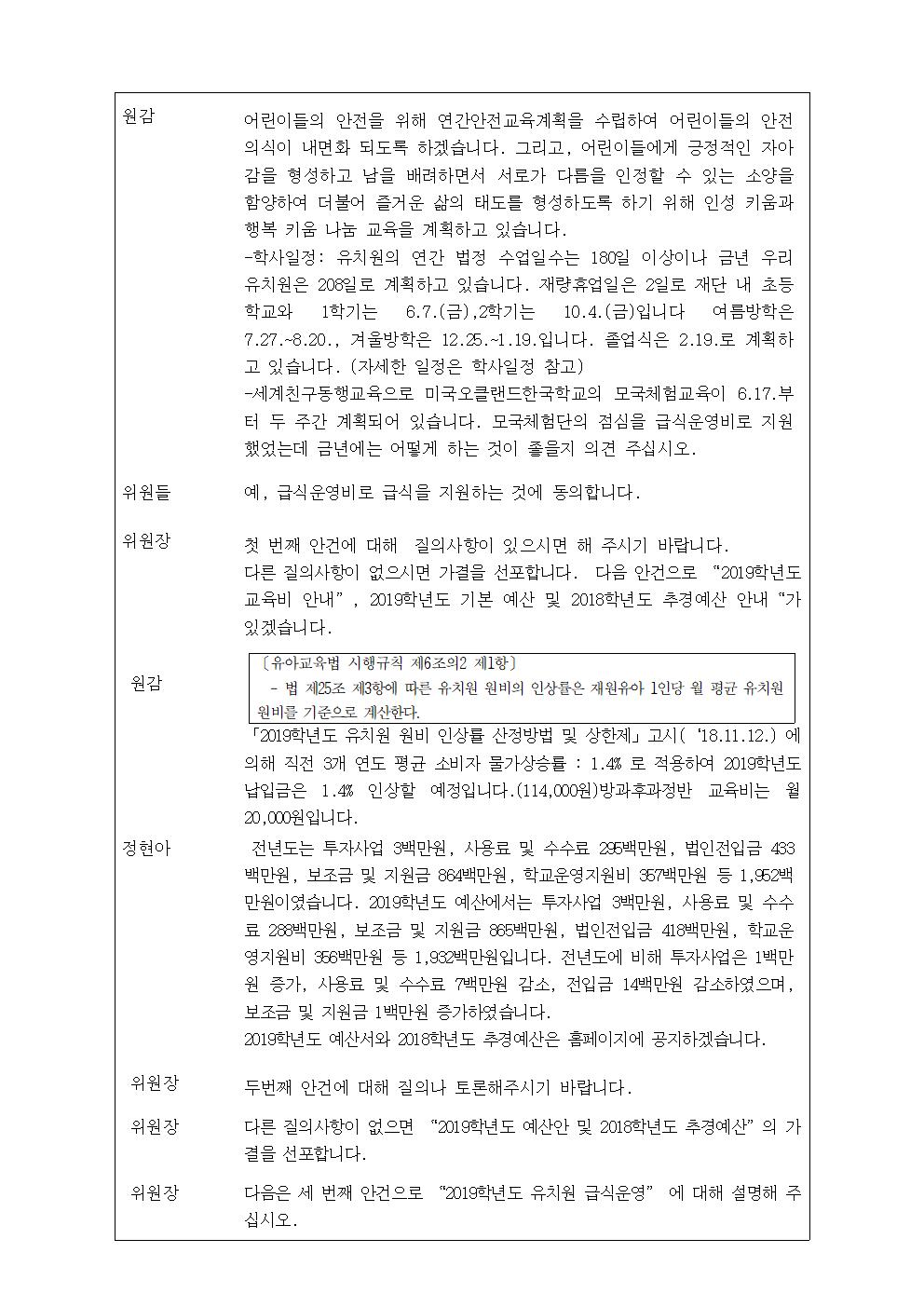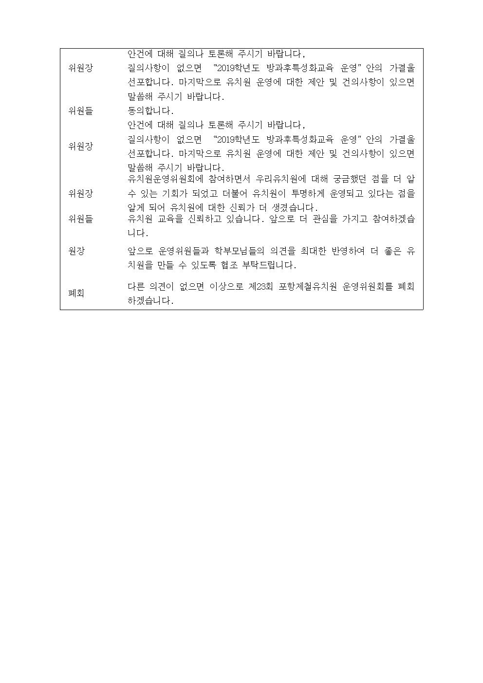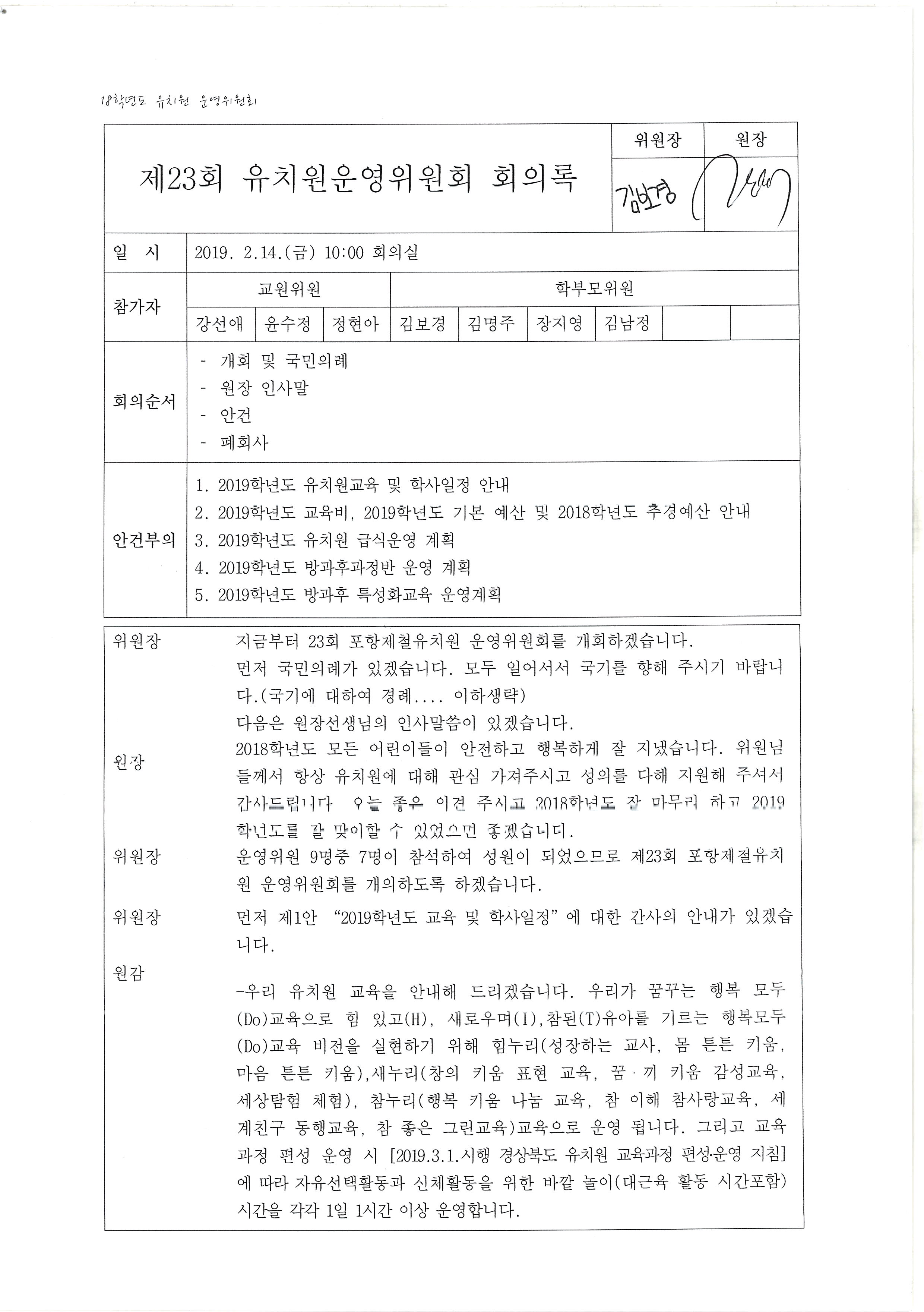 (유치원운영위원회)제23회 유치원운영위원회 회의록