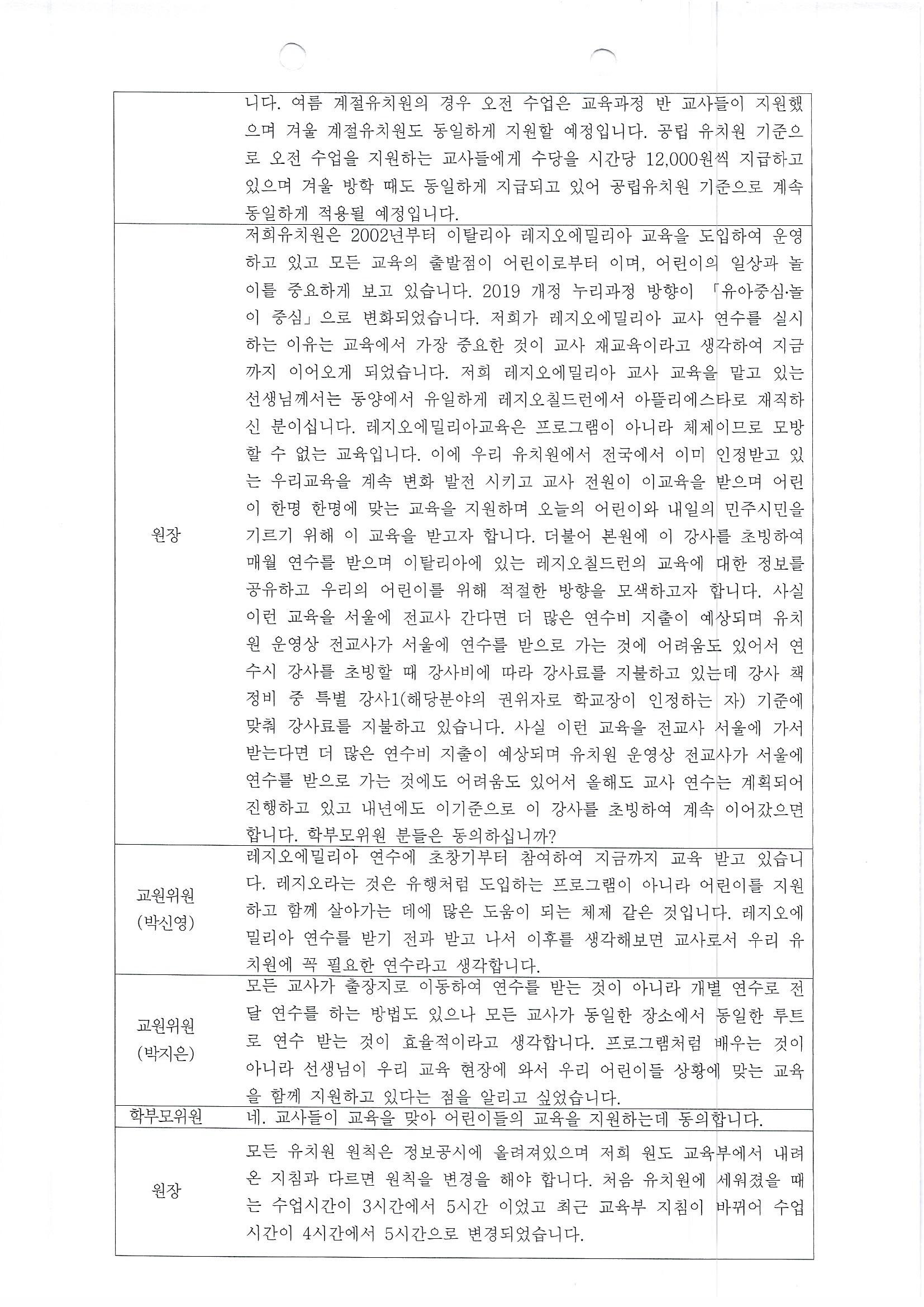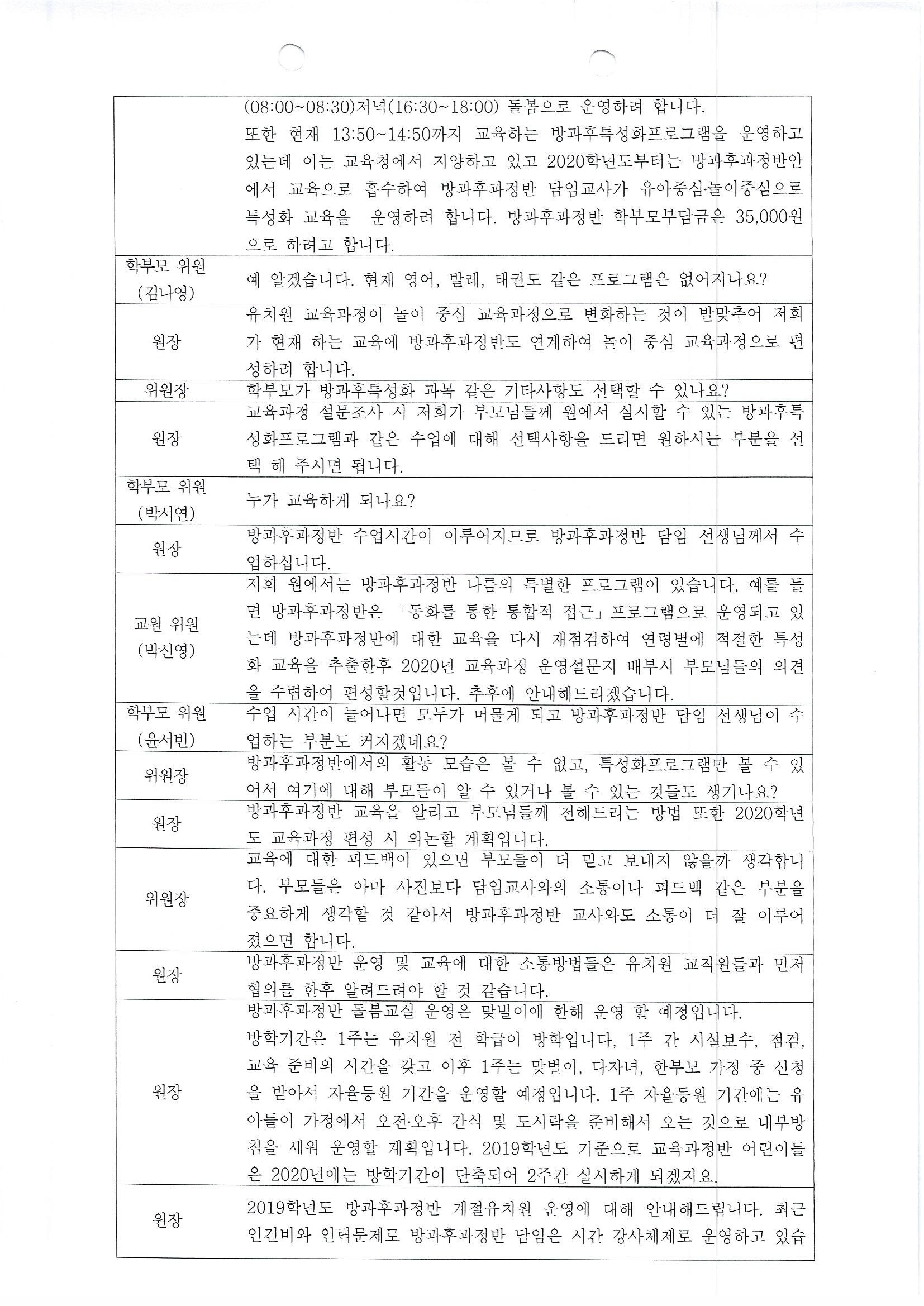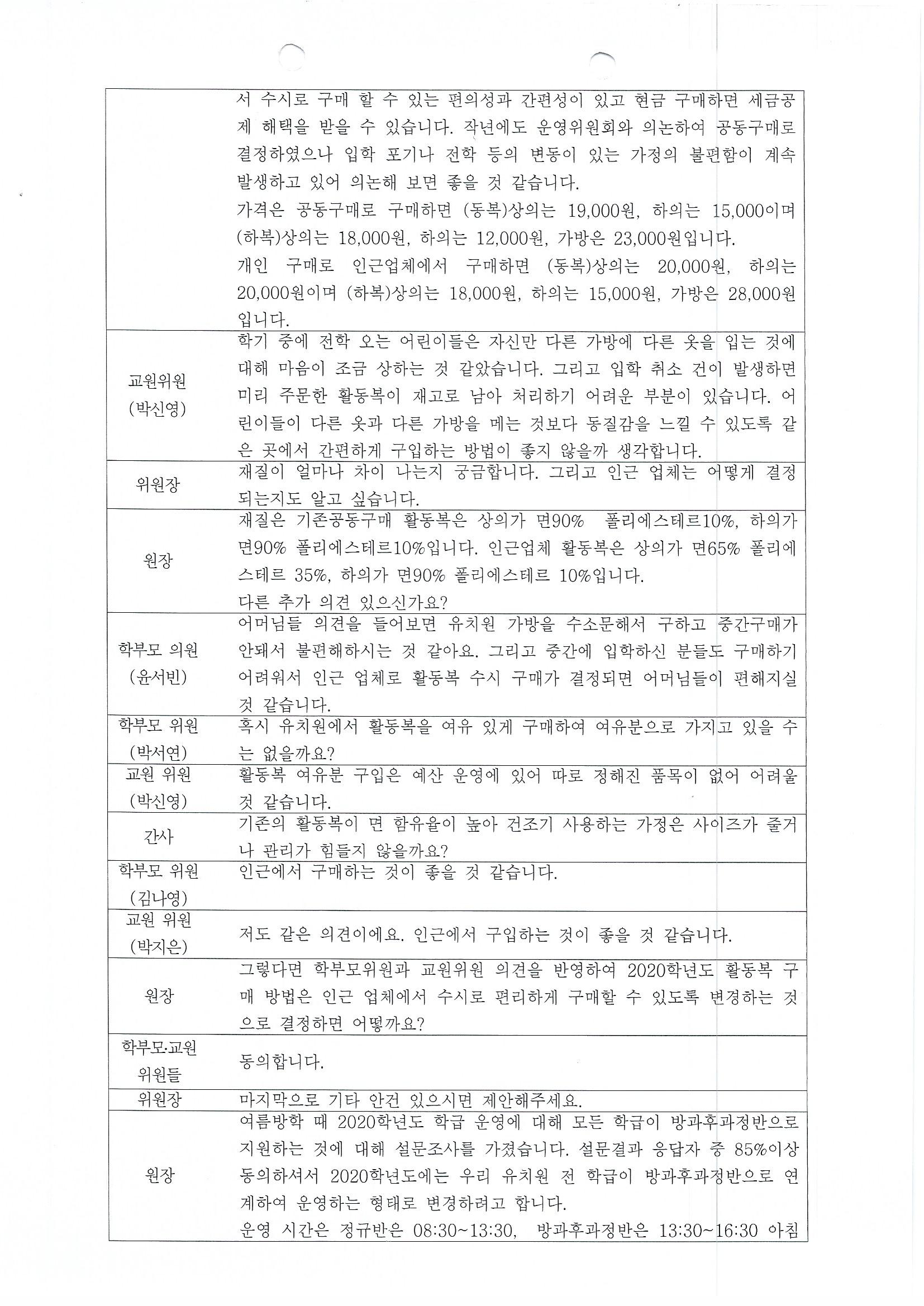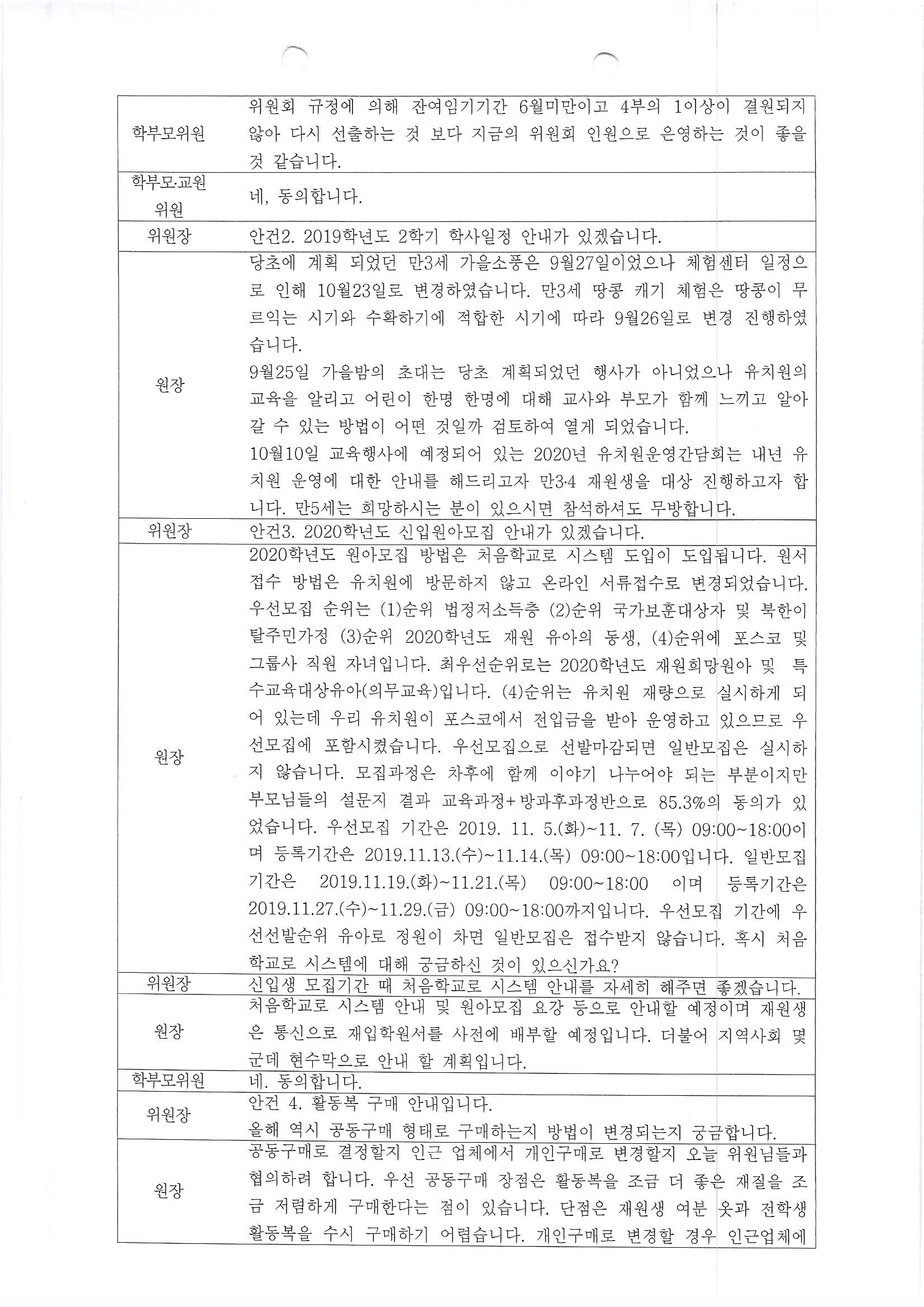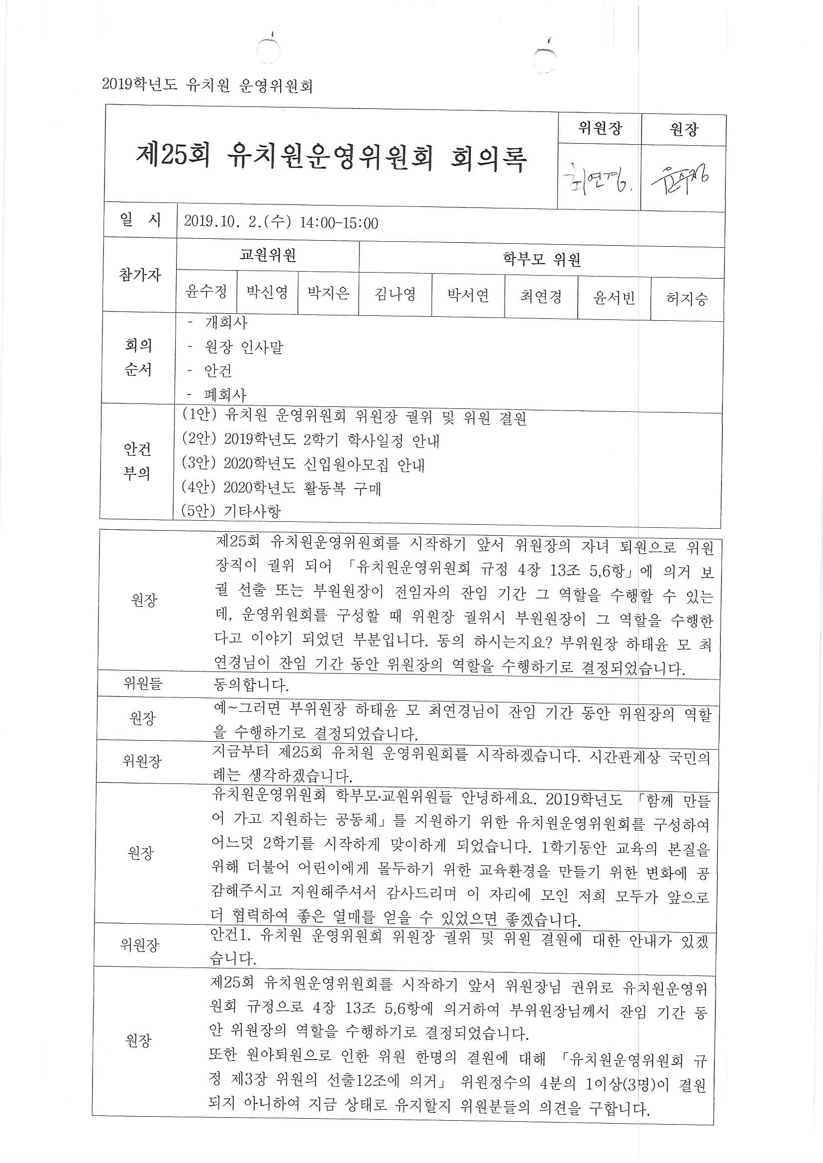 (유치원운영위원회) 제25회 운영위원회 회의록 게시